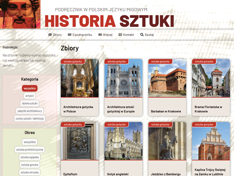 Historia sztuki w PJM to innowacyjny podręcznik online, który udostępnia wiedzę o sztuce, artystach, dziełach i zabytkach – od czasów prehistorycznych po renesans – w Polskim Języku Migowym. Projekt powstał z myślą o społeczności niesłyszących, łącząc pasję do sztuki z ideą dostępności i edukacji w PJM.